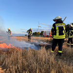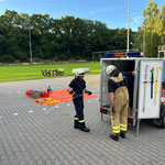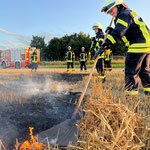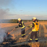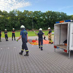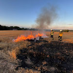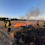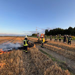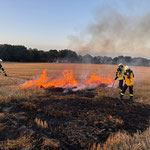 Am 05.08.2025 haben wir einen gemeinsamen Übungsdienst mit der Ortsfeuerwehr Wachendorf durchgeführt. Wir haben uns an drei Stationen mit der Flächen- und Vegetationsbrandbekämpfung beschäftigt. Nach einer kurzen theoretischen Einweisung wurde der Umgang mit Kleinlöschgeräten wie Löschrucksäcken und Feuerpatschen, die Wasserabgabe aus Tanklöschfahrzeugen während der Fahrt (pump and roll), sowie der Aufbau von mobilen Löschwasserbehältern geübt.