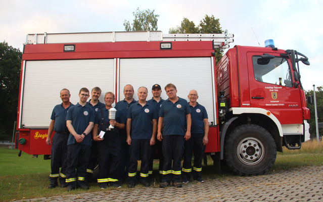 Am 10.08.2025 haben wir mit einer Gruppe am Ortspokal in Okel teilgenommen. Am Ende konnten wir uns gegen 7 weitere Gruppen bei der sogenannten "alten B-Übung" durchsetzen und den 1. Platz belegen. Wir bedanken und bei der Ortsfeuerwehr Okel für den tollen Wettbewerb und die Gastfreundschaft.